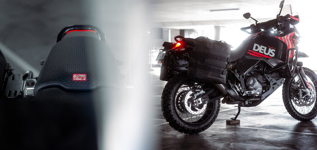 Power? Sorted. The 937cc Testastretta L-twin puts out a punchy 110hp, so the only tweak was auditory—swapping the stock pipe for a Termignoni exhaust to give it the voice it deserves. Protection was next in line, with a heavy-duty alloy skid plate guarding the underbelly and a steel frame wrap keeping the tank out of harm’s way. Kellermann Dayron lights brighten the path ahead, while Motogadget mirrors reflect the dust trail left behind.