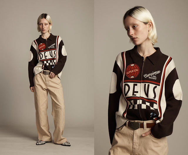 Drawing inspiration from the iconic female French rally driver Michèle Mouton, The Monte Carlo Knit Cardigan is womenswear first foray into knitwear, and it is the perfect art canvas for fusing all the inspirations such as classic racing stripes and checked flag motifs of 'Queen of Speed' together.